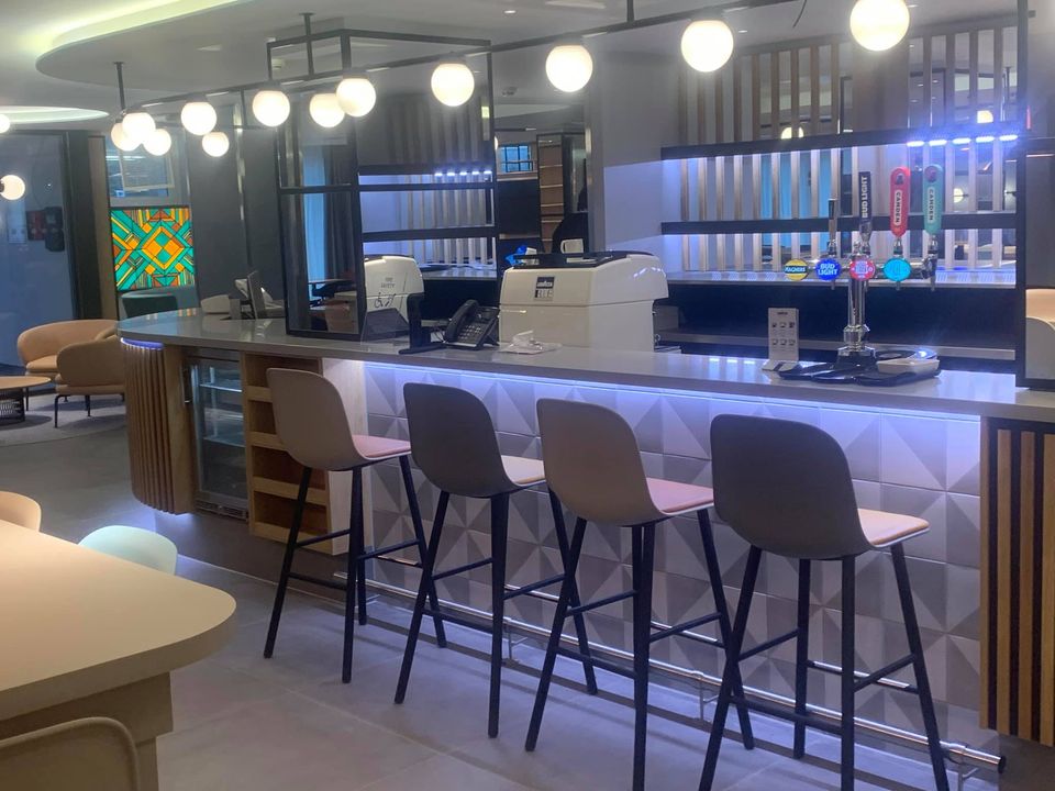 This was for one of our clients Hampton by Hilton. We manufactured and installed 20mm Silestone kensho with a 20×20 edge detail to make the stone look 40mm thick to the bar/reception and the hot and cold buffet areas.