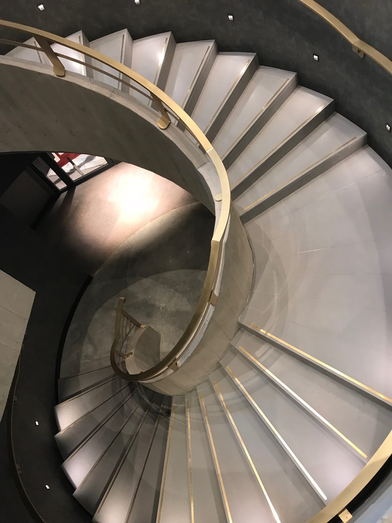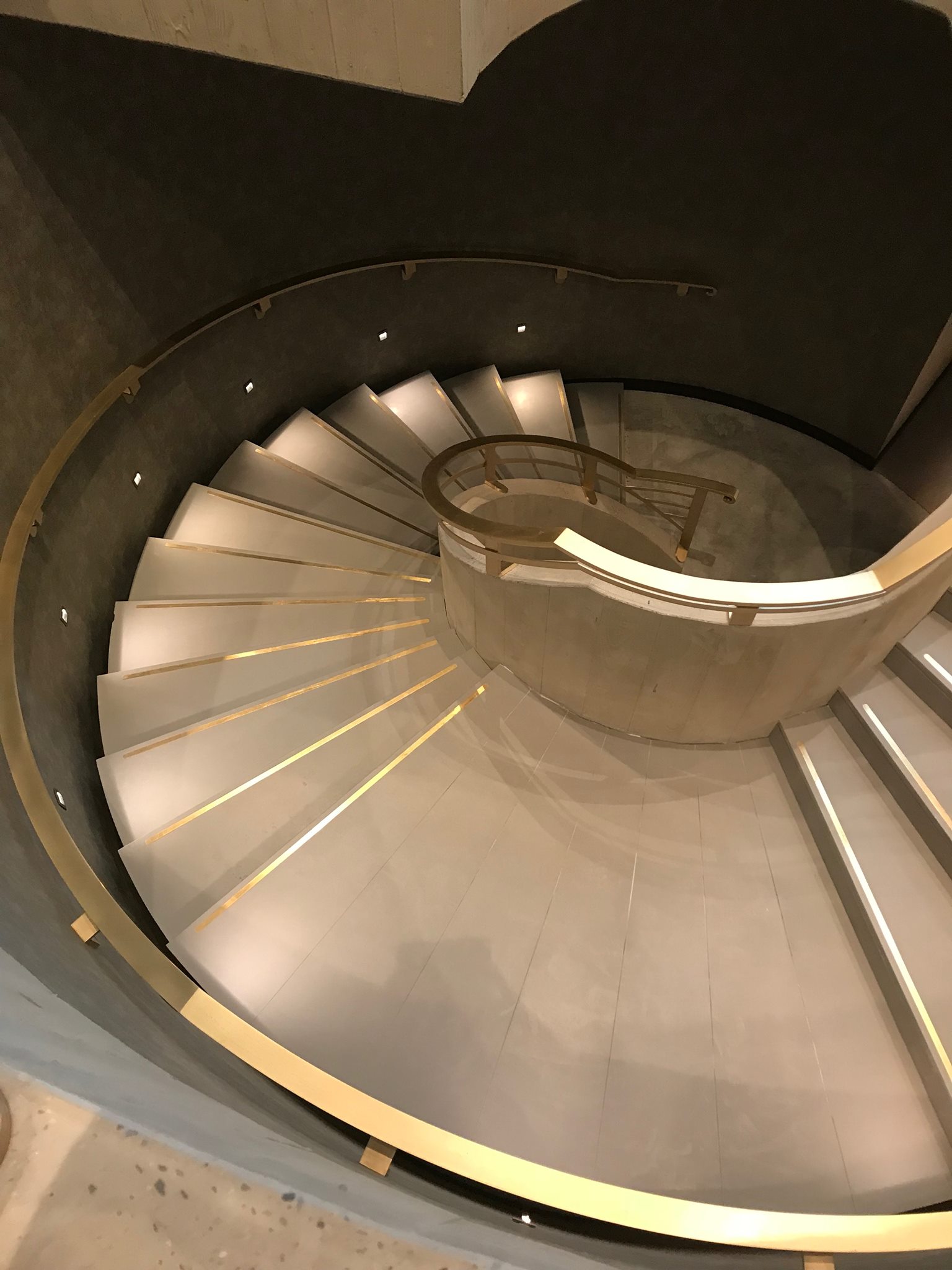 A spiral staircase in quartz that we recently manufactured and installed for a prestige Hotel in Canary wharf